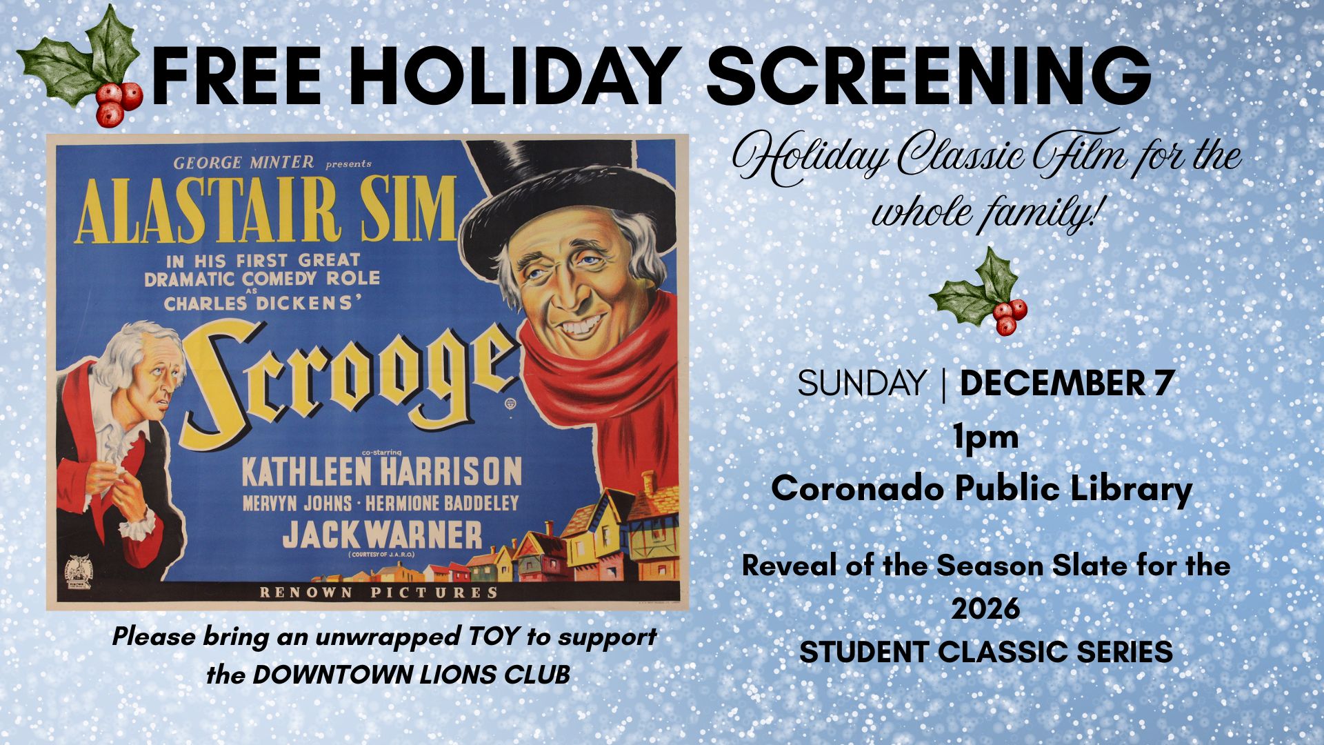 Location & Time: Winn Room at Coronado Public Library 1:00pm